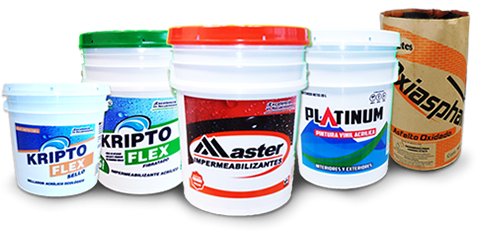 impermeabilizantes acrílicos y asfálticos, aditivos para concreto, selladores y adhesivos, pinturas vinílicas, esmaltes y de señalización vial